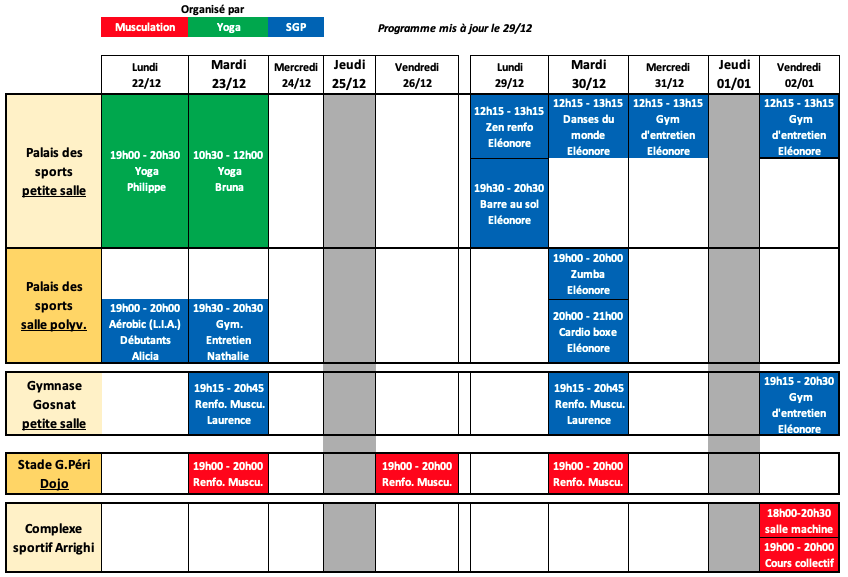 Vous pourrez également profiter des séances de sports des sections SGP et Musculation, qui, par retour pourront être accueillis aux cours de yoga.